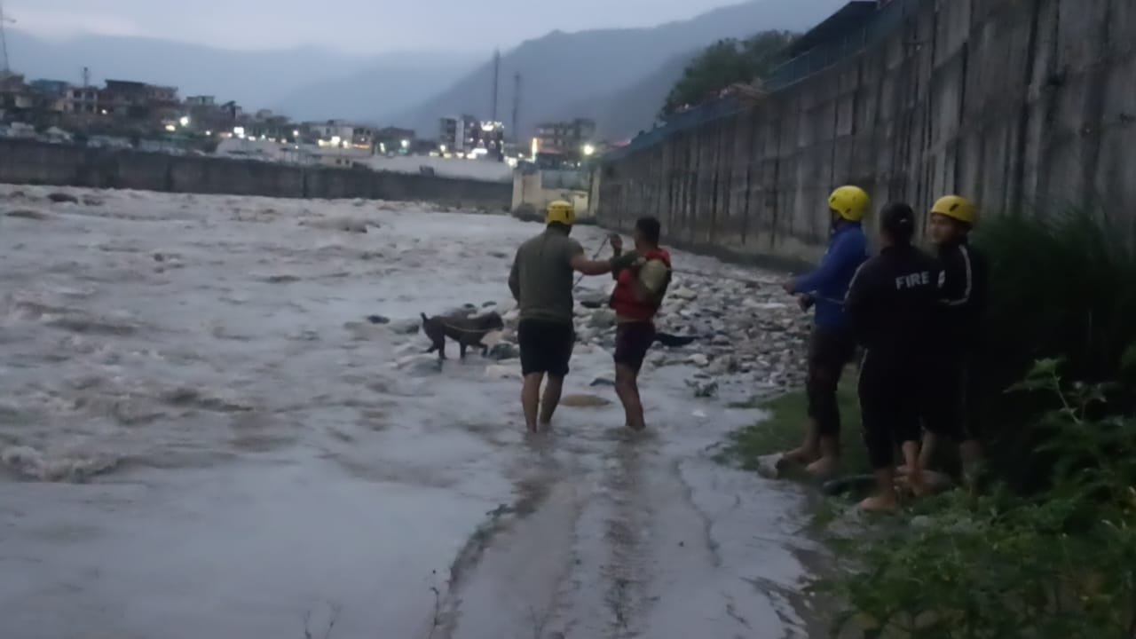 20 जून 2025 की शाम, उत्तरकाशी के केदारघाट क्षेत्र में भागीरथी नदी के बीच बने एक टापू पर एक श्वान फंस गया। तेज़ बहाव, उफनती लहरें और किनारे से दूर एक अकेला जानवर — हालत बेहद गंभीर थी।