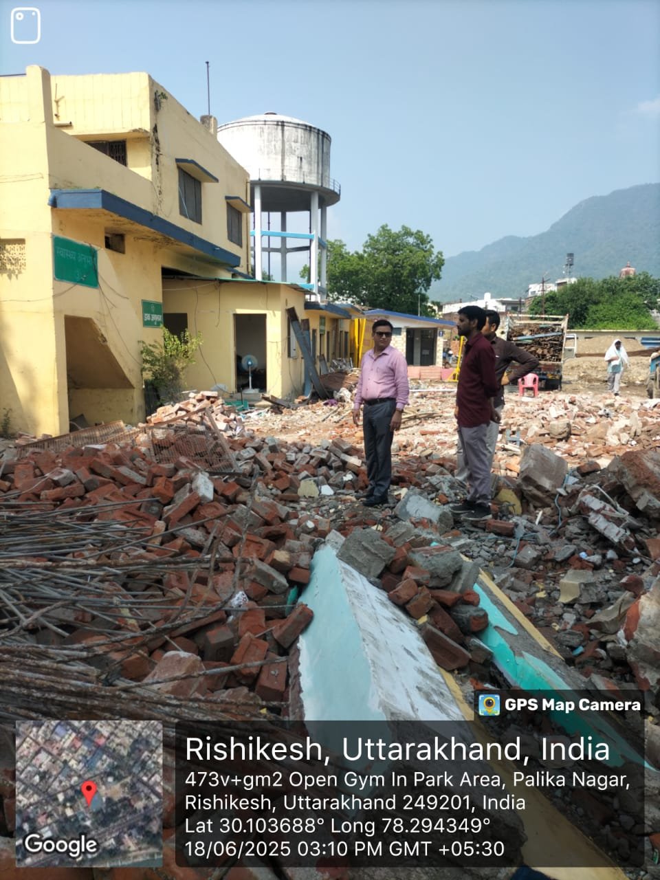 जैसे ही निरीक्षण टीम मौके पर पहुंची, देखा गया कि निर्माण कार्यदाई संस्था मै0 महालक्ष्मी बिल्डर्स ने पुराने भवन को ढहाने का काम शुरू कर दिया है। टूटती दीवारों और उड़ते मलवे के बीच भविष्य की नींव डाली जा रही है।