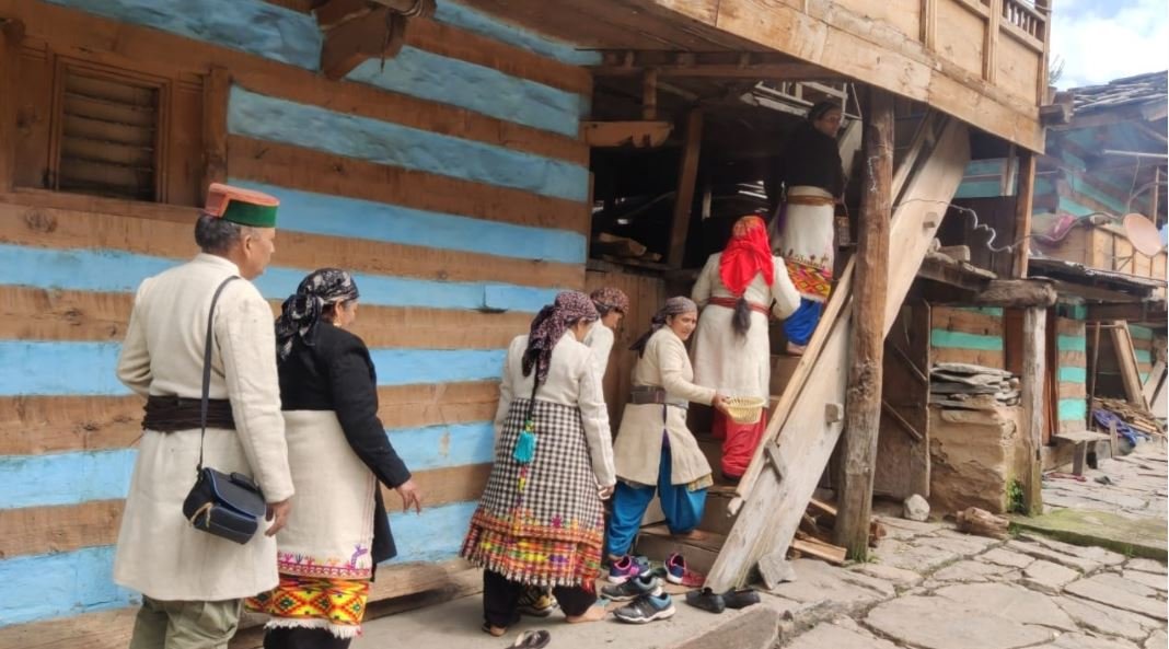 और फिर ताँदी गीत, छोपोती, छोड़ें, लामण और बाजूबंद, गाकर गांव की ओर प्रस्थान करते हैं। गांव के सभी लोग इनका आंखें बिछाए बेसब्री से इंतजार करते हैं इनके आगमन के स्वागत के लिए गांव के युवा व युवतियों द्वारा सोमेश्वर महादेव शिव की हरियाली भरी घास पत्तियों से मूर्ति का निर्माण करके रखते हैं।