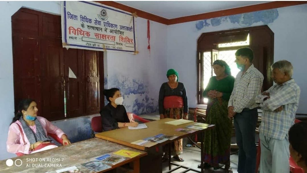 राज्य विधिक सेवा प्राधिकरण नैनीताल के निर्देशानुसार जिला विधिक सेवा प्राधिकरण उत्तरकाशी द्वारा आम जनता को कानूनी जानकारी दिए जाने हेतु शुक्रवार को एक विशेष अभियान चलाया गया। सचिव जिला विधिक सेवा प्राधिकरण सुश्री दुर्गा शर्मा द्वारा ग्राम गंगोरी एवं लीगल एड क्लीनिक गणेशपुर गांव में विधिक जागरूकता शिविर का आयोजन किया गया। जिसमें उनके द्वारा उपस्थित लोगों को नागरिकों के अधिकारों, मोबाइल वेन, लीगल एंड क्लिनिक, प्री लिटिगेशन, मध्यस्था के माध्यम से सुलह समझौते के आधार पर वादों का निस्तारण, ई-कोर्ट सर्विस, मोबाइल एप,नागरिकों के मौलिक कर्तव्यों, लोक अदालत और जिला विधिक सेवा प्राधिकरण द्वारा किए जा रहे कानूनी सहायता कार्यक्रमों के बारे में विस्तार से जानकारी दी गई । शिविर के अंत में माननीय राज्य विधिक सेवा प्राधिकरण नैनीताल से प्राप्त सरल कानूनी ज्ञान माला पुस्तकों का भी वितरण किया गया।