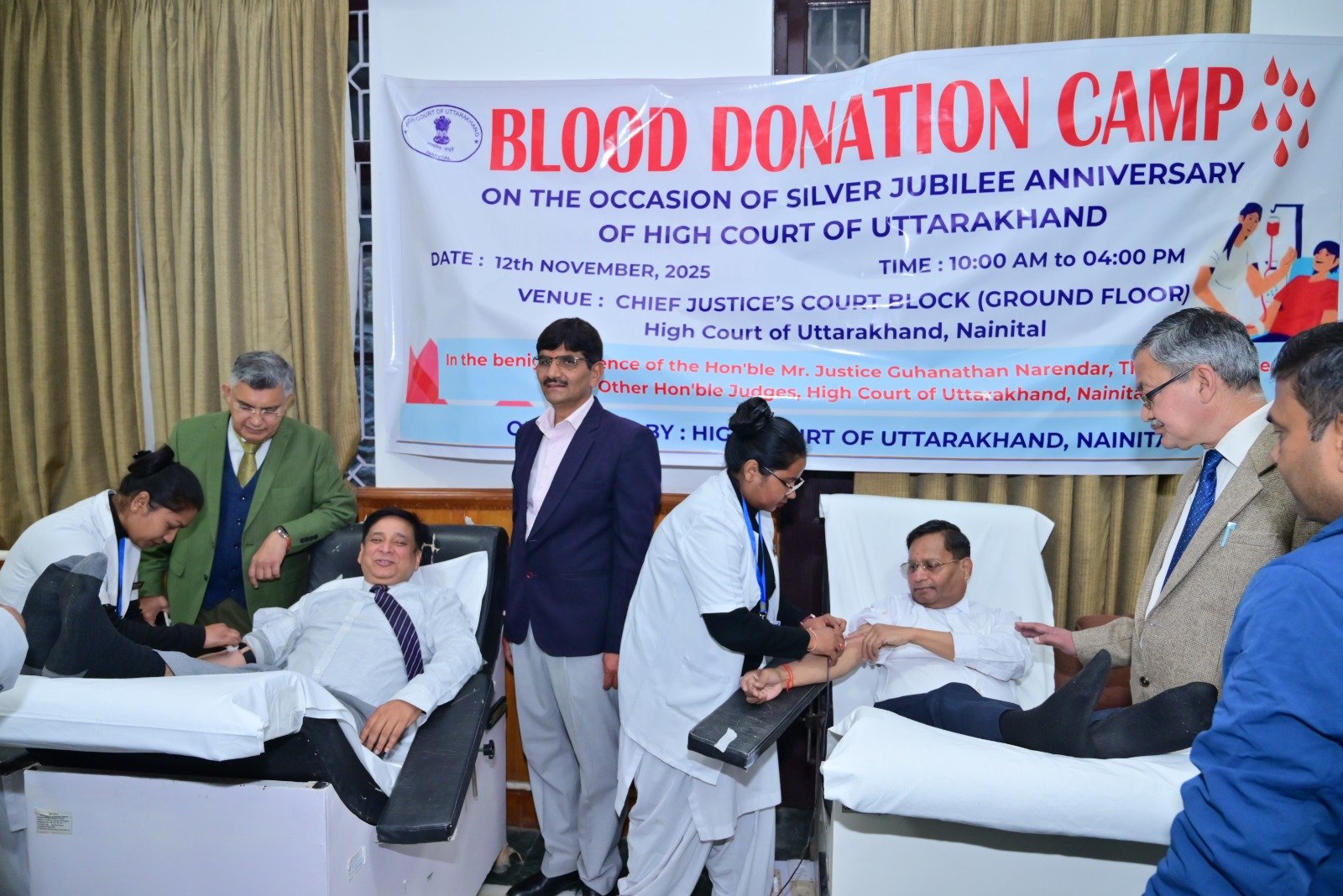 उत्तराखंड उच्च न्यायालय ने अपनी कॉर्पोरेट सामाजिक जिम्मेदारी (CSR) पहल के तहत यह रक्तदान शिविर आयोजित किया।