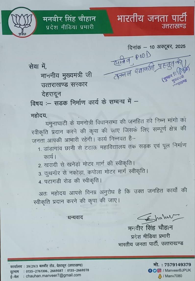 “सीएम ने सभी स्वीकृति और निर्माण कार्य पर शीघ्र कार्रवाई के निर्देश दिए। यमुनोत्री क्षेत्र की मूलभूत समस्याओं पर सरकार पूरी तरह सजग है।” — मनवीर सिंह चौहान